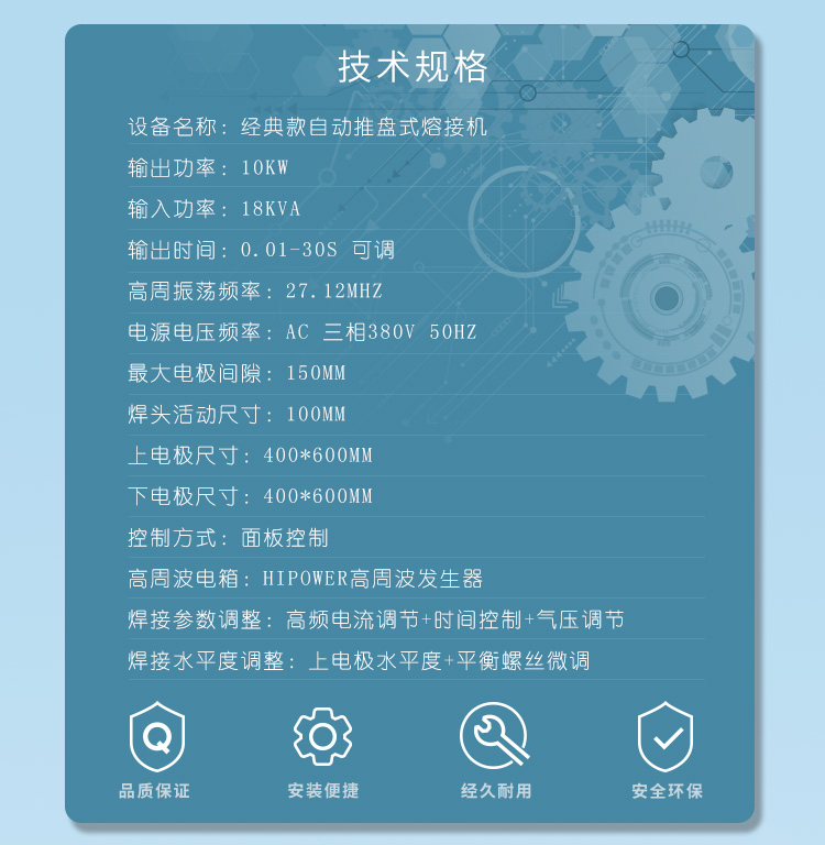 三,單頭推盤式高周波塑料熔接機的技術規(guī)格: