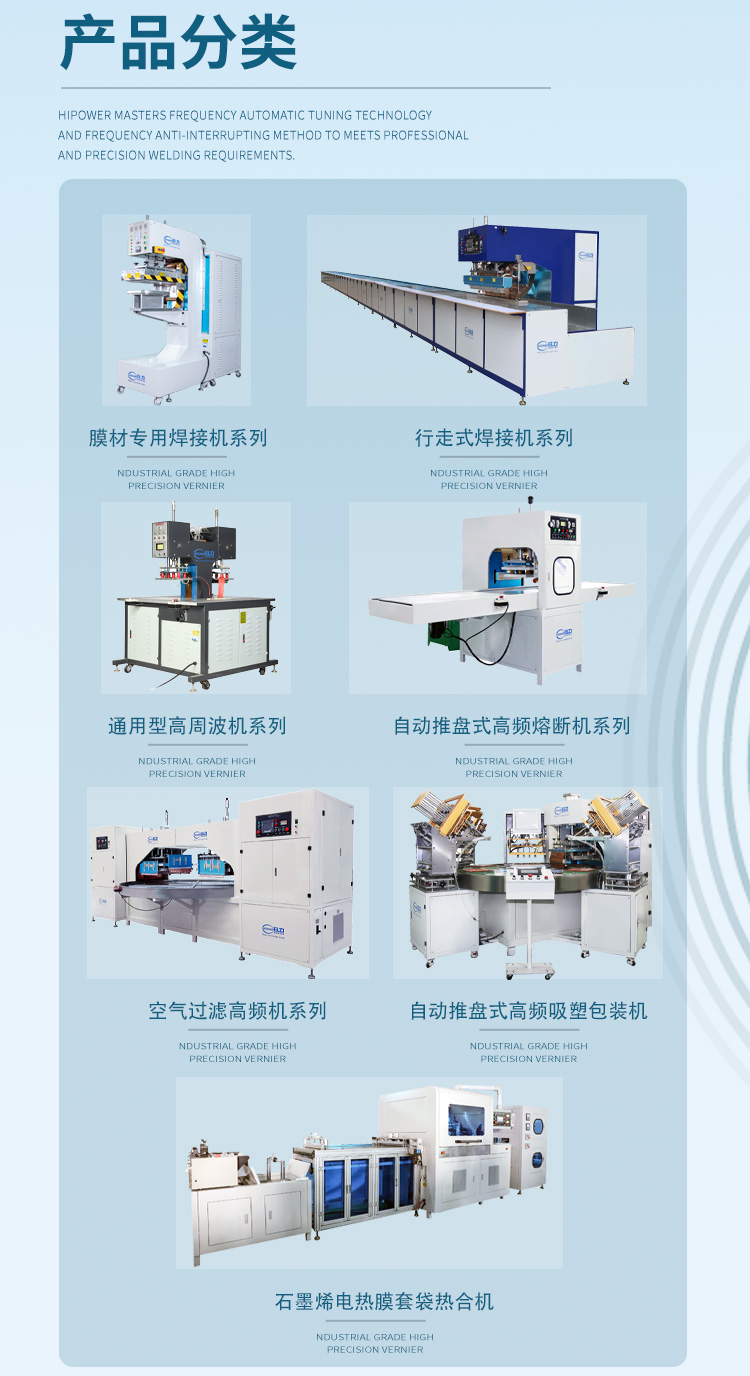 ★高周波熔接機(jī),通常也稱為高周波吸塑包裝機(jī)、高周波塑料熔接機(jī)、高頻熱合機(jī)、高頻封口機(jī)、吸塑包裝機(jī)、高周波封口包裝機(jī)、熱合封口包裝、泡殼包裝機(jī)、高頻熱合包裝機(jī)、吸塑包裝機(jī)、高周波封口機(jī)、高頻包裝機(jī)、高周波包裝機(jī)、包裝機(jī)械等等。單頭推盤式高周波熔接機(jī)和單頭轉(zhuǎn)盤式高周波熔接機(jī)有手動(dòng)和自動(dòng)兩種可供選擇,自動(dòng)推盤式或自動(dòng)轉(zhuǎn)盤式的高周波機(jī)效率更高,產(chǎn)量更好。自動(dòng)滑臺式高周波熔接機(jī)為雙向自動(dòng)滑臺,往返式連續(xù)送料熔接,定位準(zhǔn)。也適用用大面積產(chǎn)品的加工,熔接,如PVC水床,漂流筏,兒童泳池等。
