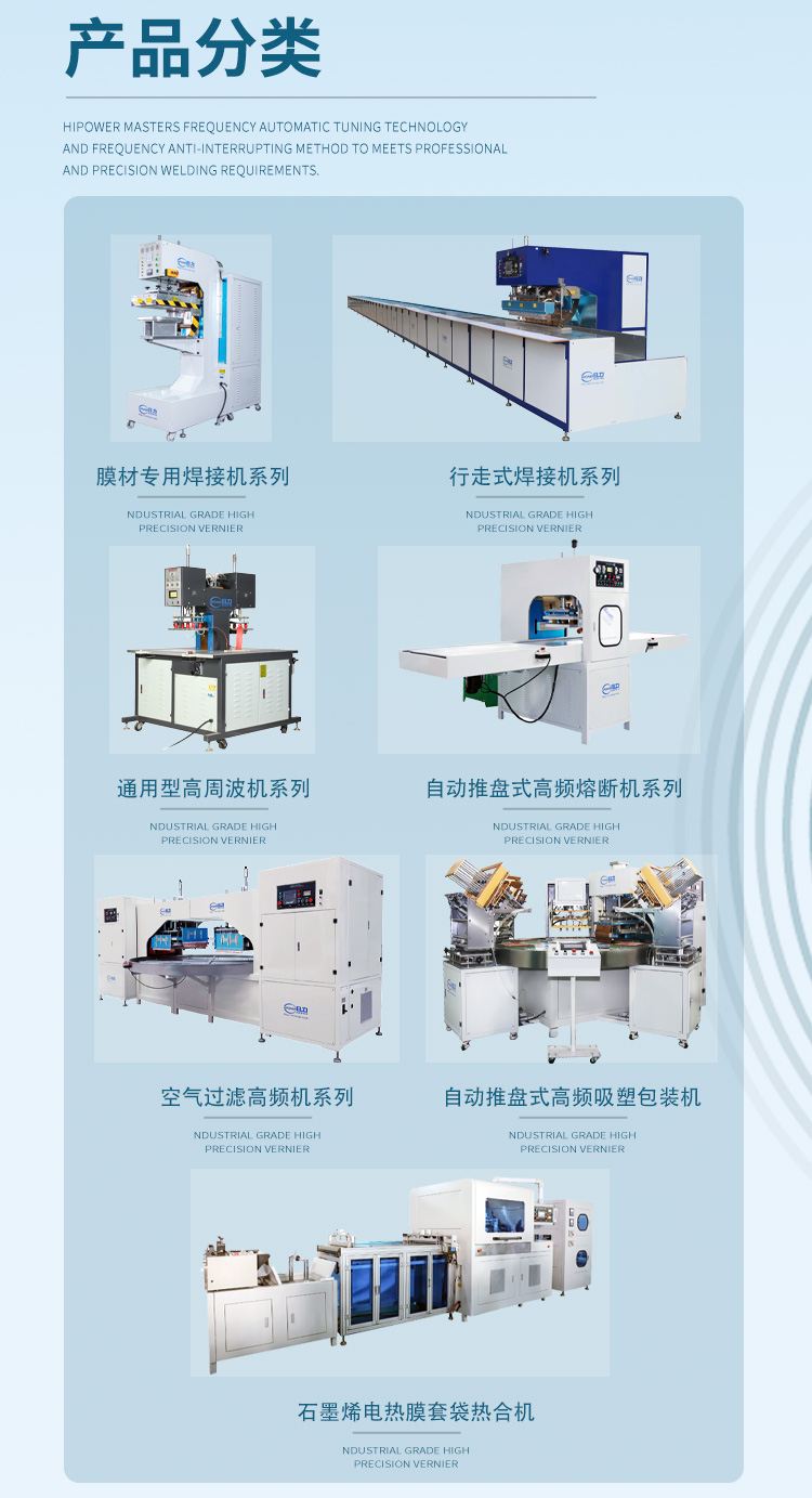 用途: 主要用于需要高周波熔接同時又必須同步裁斷的產(chǎn)品加工,高周波機(jī)的工作原理是利用高周波先熔接再通機(jī)器配有的壓力裝置同