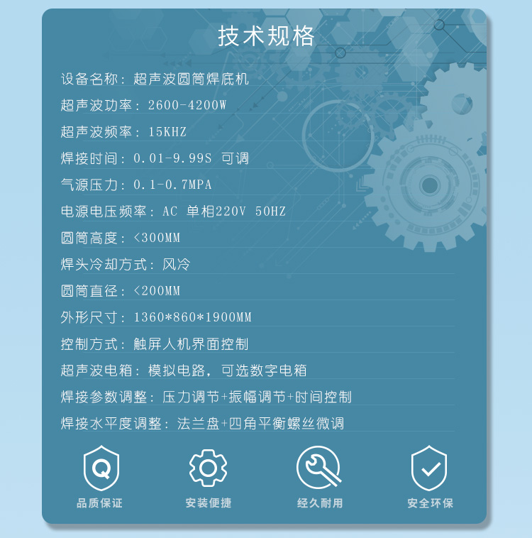 三,超聲波圓筒封底機(jī) 技術(shù)規(guī)格: