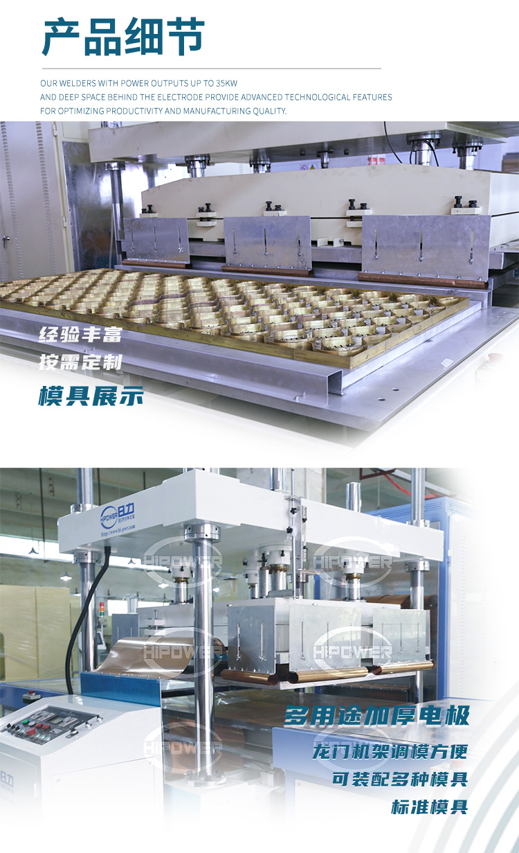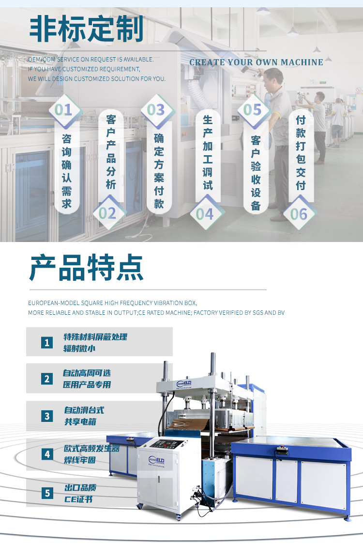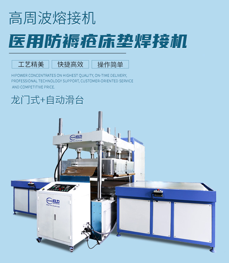 主要用于需要高周波熔接同時又必須同步裁斷的產(chǎn)品加工,高周波機(jī)的工作原理是利用高周波先熔接再通機(jī)器配有的壓力裝置同時切斷,基本上是同時完成,故高周波同步熔斷機(jī),也稱為高周波熔斷機(jī)、熔斷機(jī)、高周波同步裁斷機(jī)、高周波裁斷機(jī)。適用于大面積的高周波熔接裁斷,馬桶坐墊成型,大型腳墊成型,APET,PETG,GAG等環(huán)保材料的高周波柔軟線膠盒壓線,也可用于APET、PETG、GAG環(huán)保材質(zhì)的雙面吸塑泡殼的封口包裝、吸塑紙卡包裝、牙刷封口包裝,以及EVA布類皮革、真皮、OPP、PU、表帶、吊帶、熱水袋、保暖袋等需要熔接又要同步熔斷的產(chǎn)品。