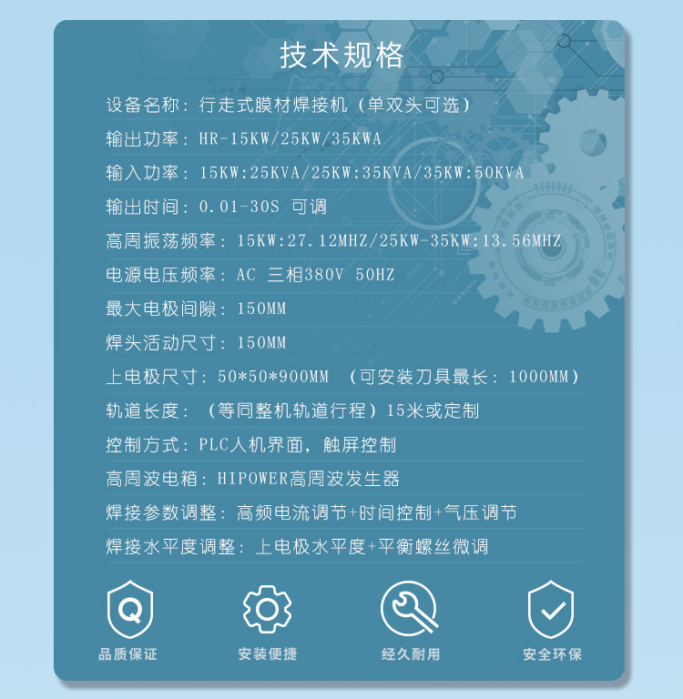 ※通過高周波的原理,用于大面積,大尺寸PVC或膜結構焊接,如航天工程,充氣游樂設備,大型帳篷等,適用于PVC/PVDF涂層布的焊接