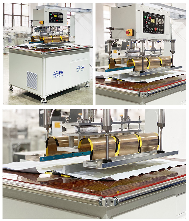 | 機(jī)器特點(diǎn): | 機(jī)器配十字線激光器定位燈,方便對位拼接;工作臺上下加裝滾輪,避免材料送料定位時(shí)刮傷;NL-5557防火花電子管保護(hù)裝置,使模具及產(chǎn)品的損害降到最低程度;機(jī)器模頭可懸掛在屋頂?shù)膽伊荷希瑹o限寬度放料方便大面積產(chǎn)品連續(xù)拼接; |