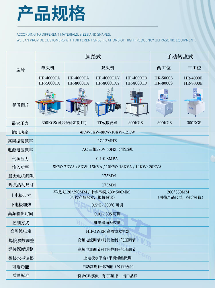 高周波 功率:                5KW                                   8KW