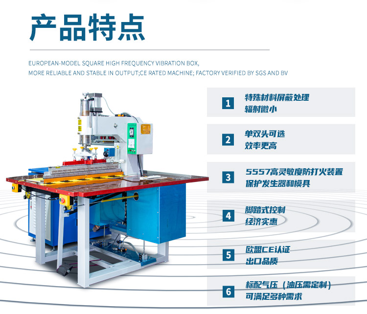 皮革皮具箱包行業(yè)類的高周波熔接真皮、皮具、皮革的焊接、壓花、熱合、熔斷、毛巾箱包壓花等;