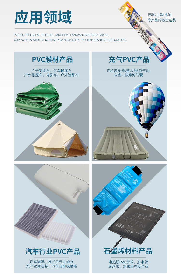 適用范圍: 醫(yī)療袋,密封袋,皮具,線束,文具,充氣墊,氣嘴