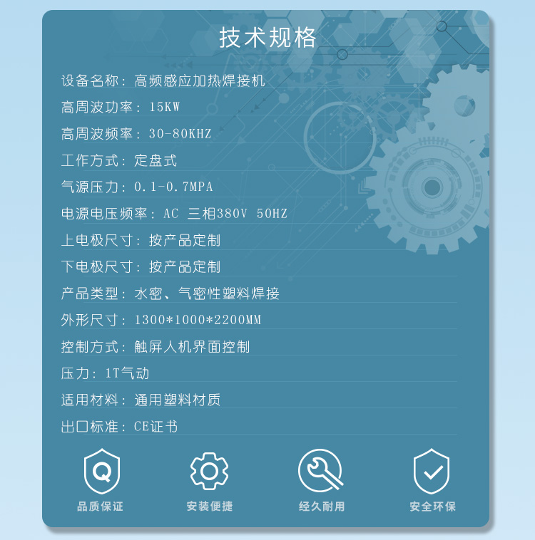 利用高頻感應(yīng)加熱,也稱為高周波誘導(dǎo)加熱的原理,對(duì)金屬件進(jìn)行高周波感應(yīng)加熱后,再通過埋植機(jī)的氣動(dòng)壓力將金屬件平整地埋植至塑膠內(nèi),埋植后的塑膠件平整美觀,無(wú)傷痕。水壺類PP容器、汽車配件類PP容器,通過高周波喇叭網(wǎng)埋植機(jī)埋植后,水密氣密性良好。同樣可用來(lái)埋植喇叭金屬網(wǎng)、金屬對(duì)塑膠的埋植等。