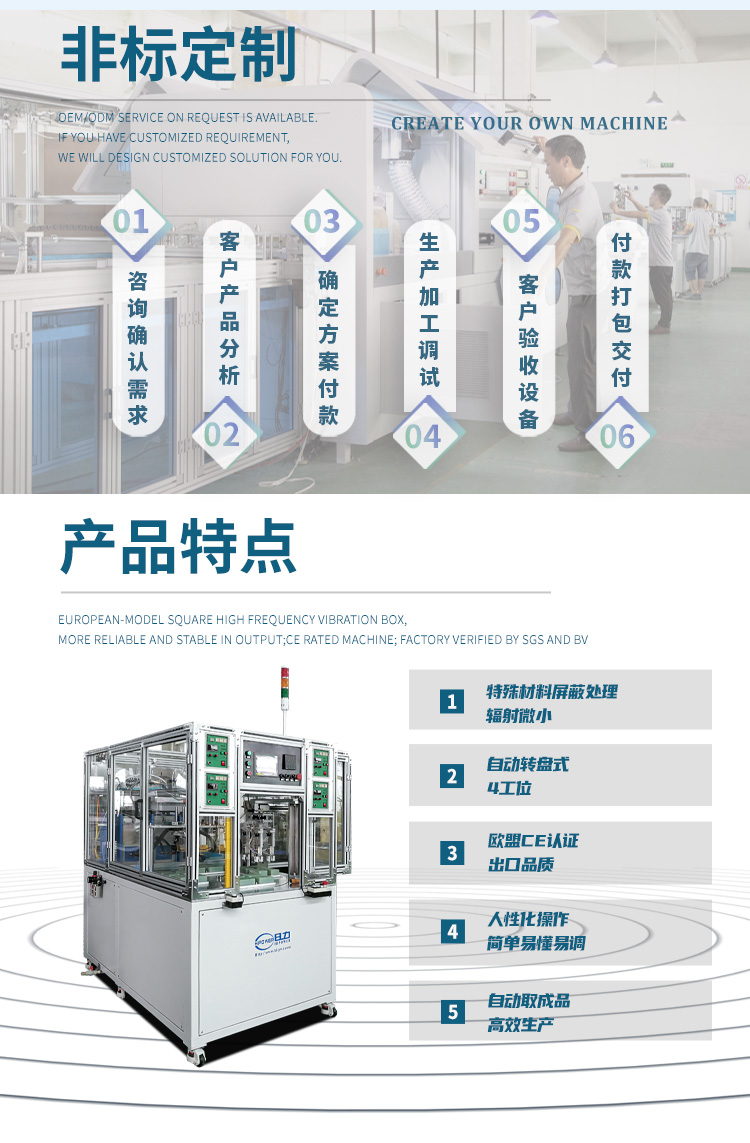※適用行業(yè): 家庭電器制品、樂器、文具、玩具、汽車零件等五金塑膠制品熔接加工。如,水壺類PP容器、汽車配件類PP容器塑料音箱的喇叭網(wǎng)埋植、金屬網(wǎng)喇叭、音響、五金制品、塑膠產(chǎn)品、電子產(chǎn)品的金屬同料膠埋植熔接。