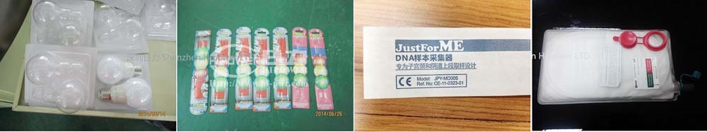 馬桶蓋墊子,  牙刷吸塑包裝,  過濾芯吸塑包裝,  泡殼包裝, 鞋墊制作,皮革壓花,TPU熔斷,LED燈泡包裝等